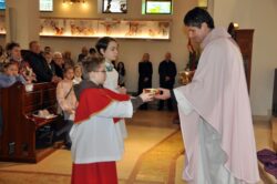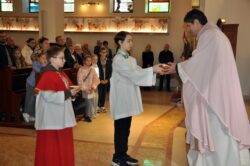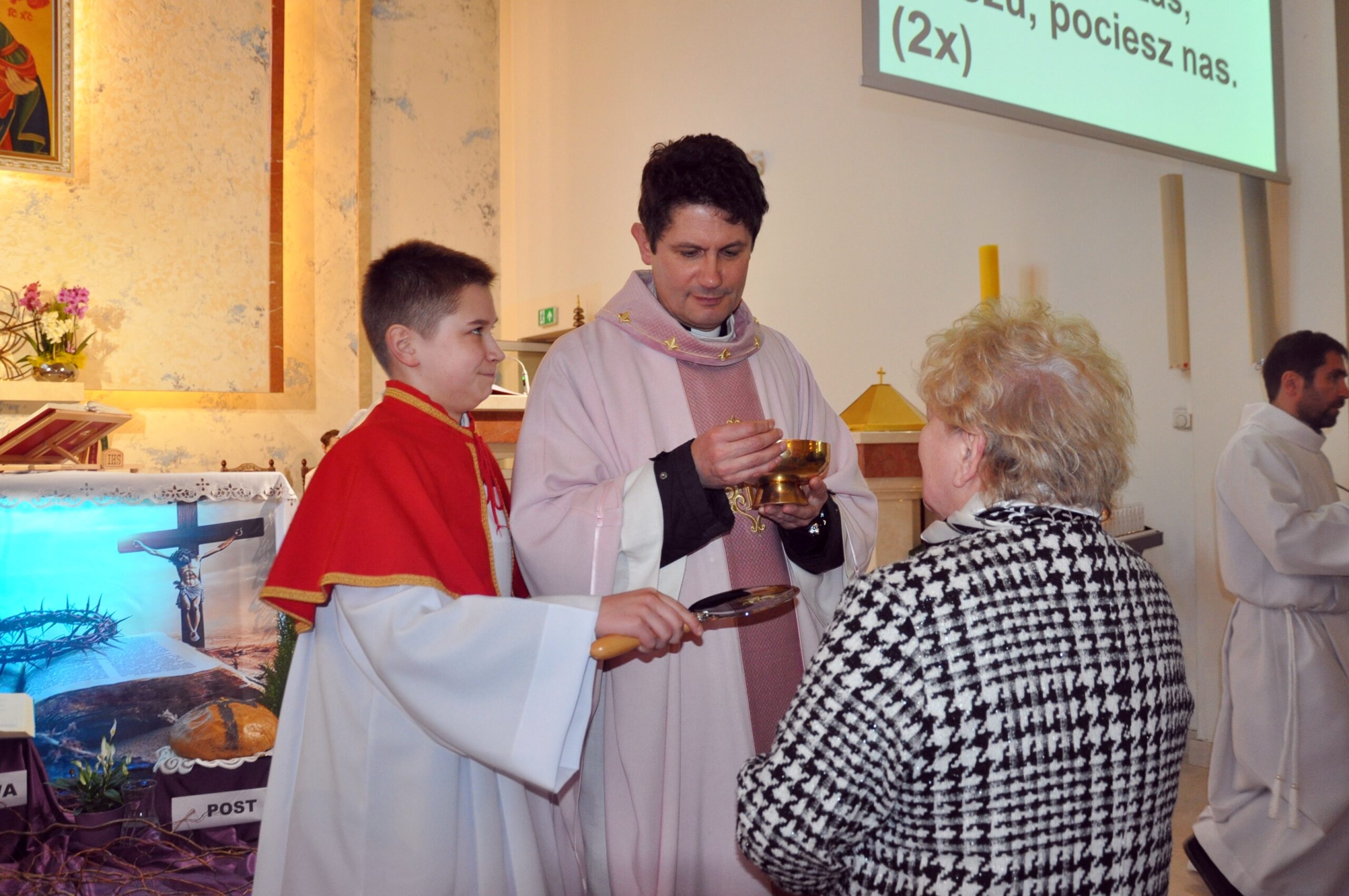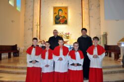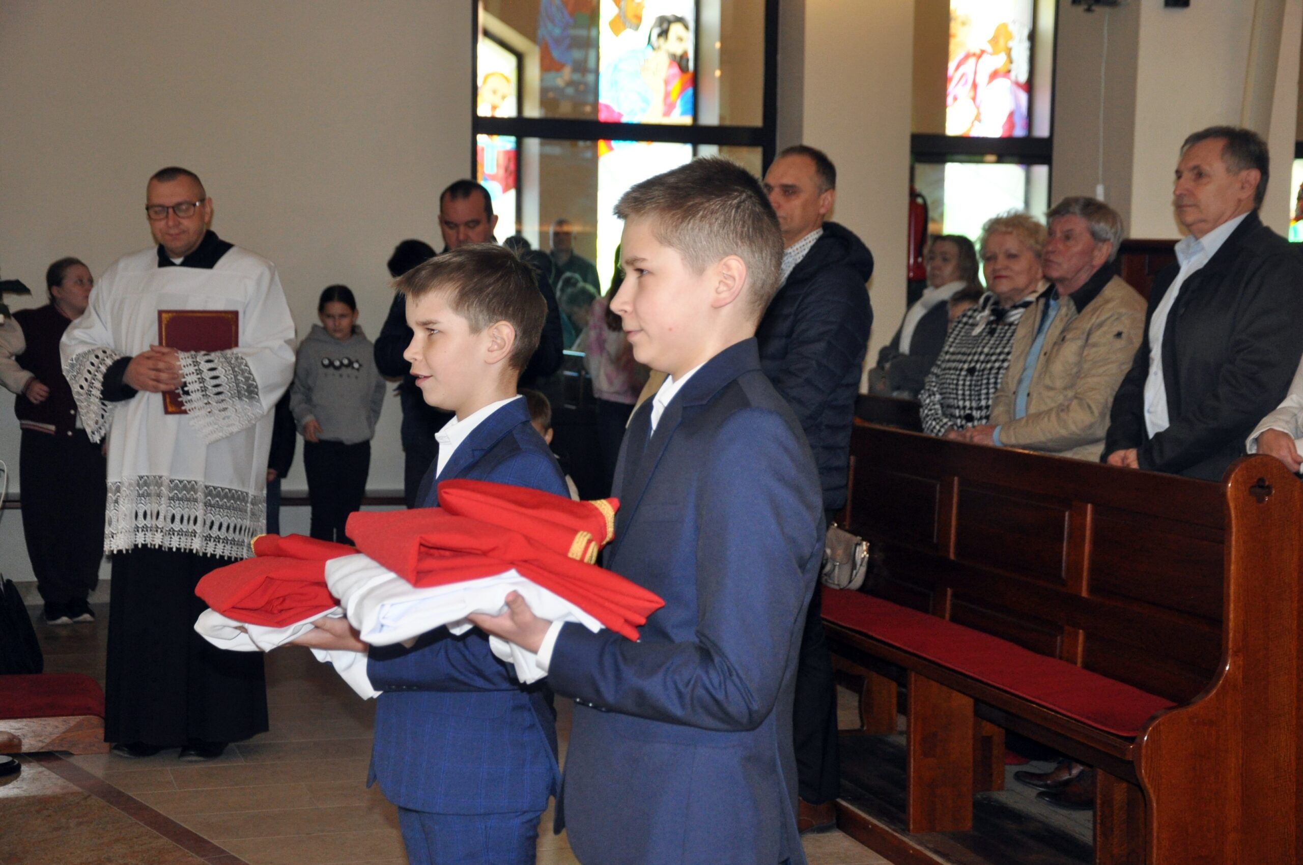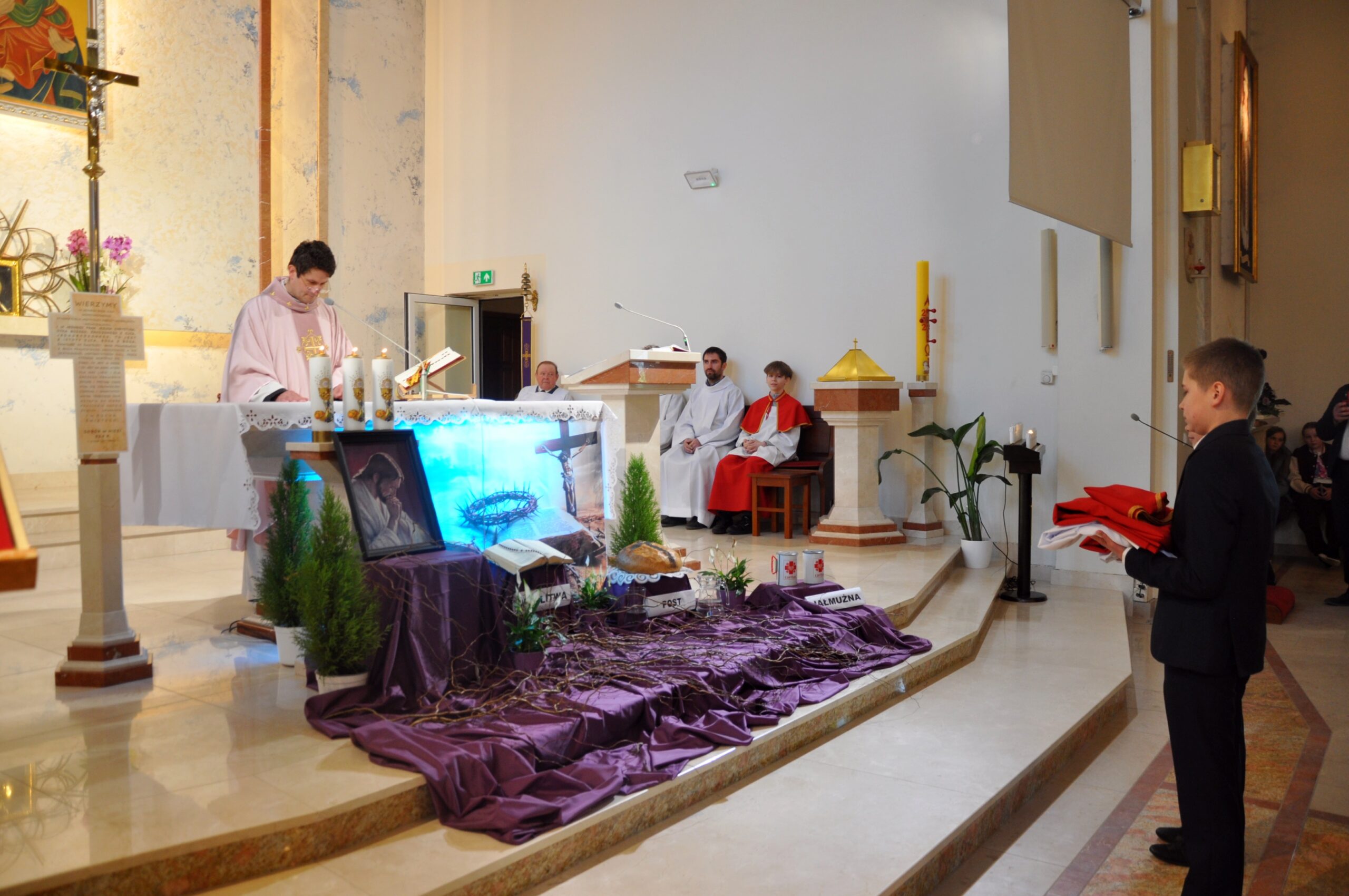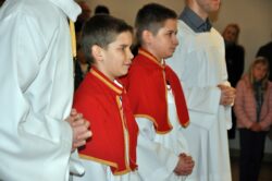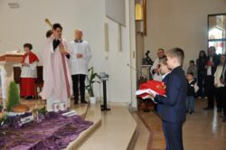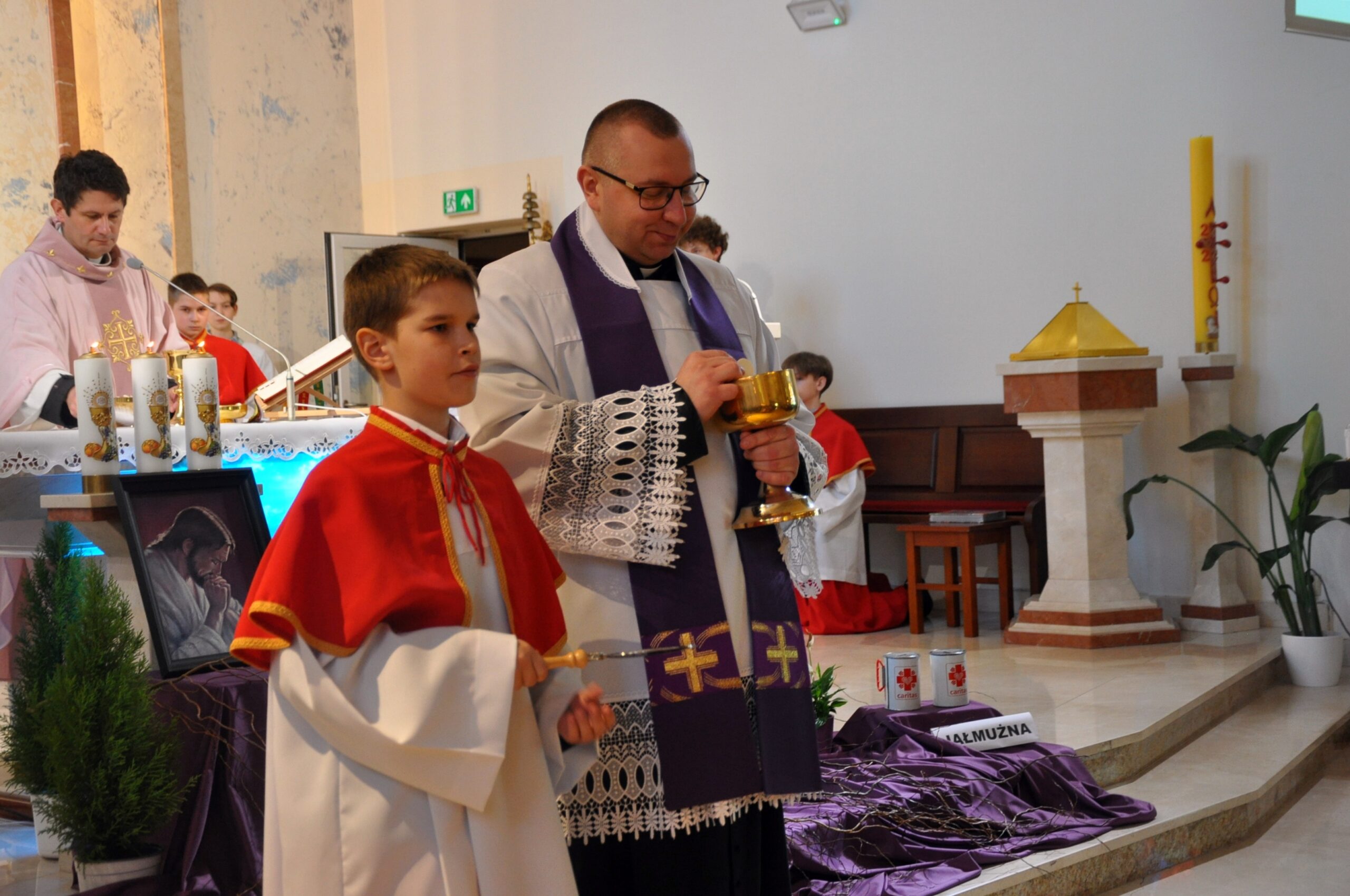 Również 15 marca 2026 roku, w Niedzielę Laetare, z wielką radością nasza wspólnota parafialna powitała w gronie Służby Liturgicznej Ołtarza dwóch nowych ministrantów. Obrzęd przyjęcia miał miejsce podczas Mszy Świętej o godz. 11:30 i dokonał go Ks. Proboszcz. Nowi ministranci, Jakub i Krzysztof, przygotowanie do posługi ministranta rozpoczęli się z nowym rokiem szkolnym 2025/2026. Dziś ich zapał został zwieńczony symbolicznym nałożeniem komży wraz z pelerynką. Rodzice nowym ministrantów ufundowali dla naszej wspólnoty parafialnej dwie nowe pateny ministranckie. Z serca dziękujemy za ten dar ołtarza!