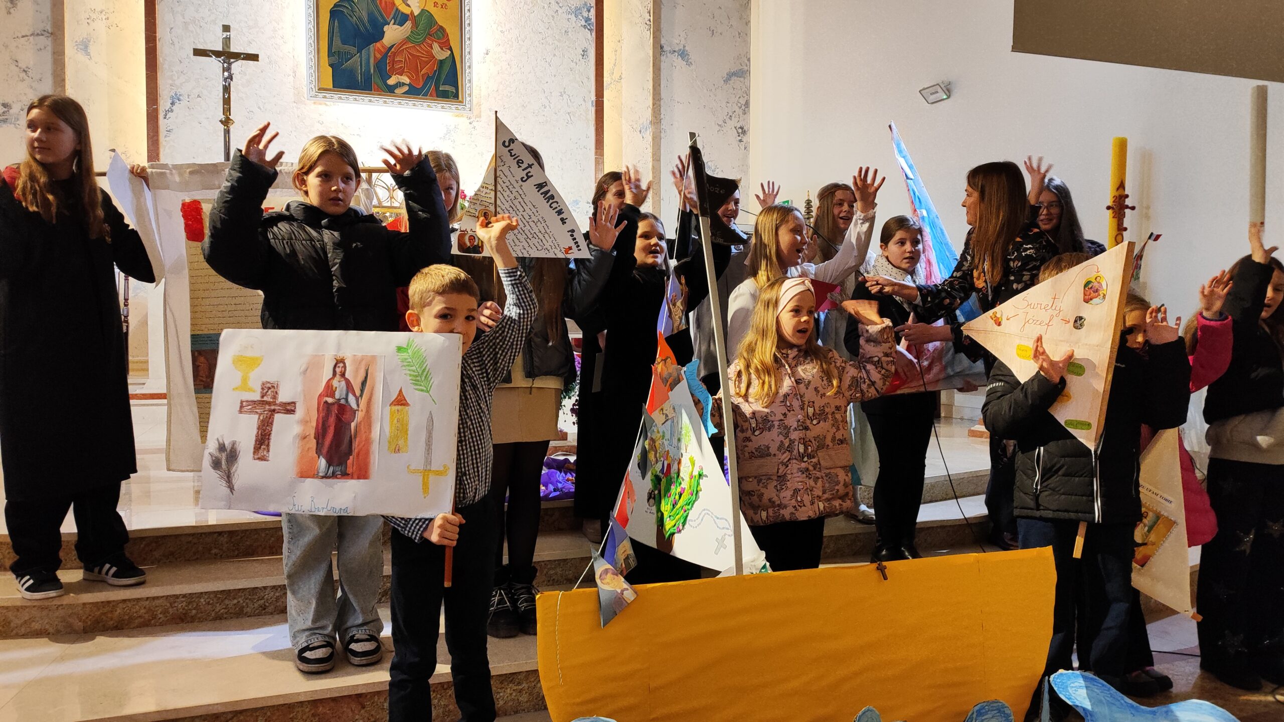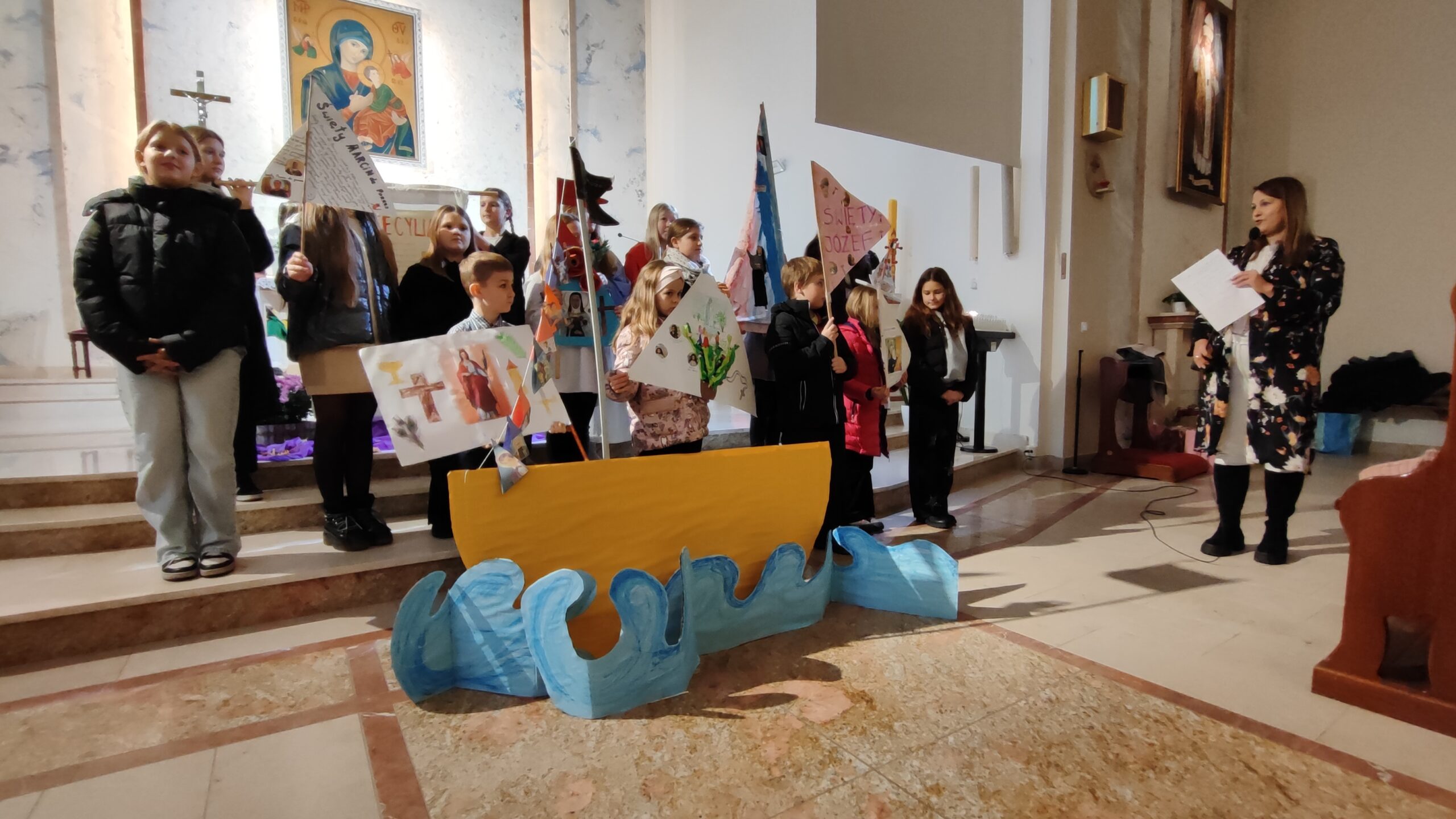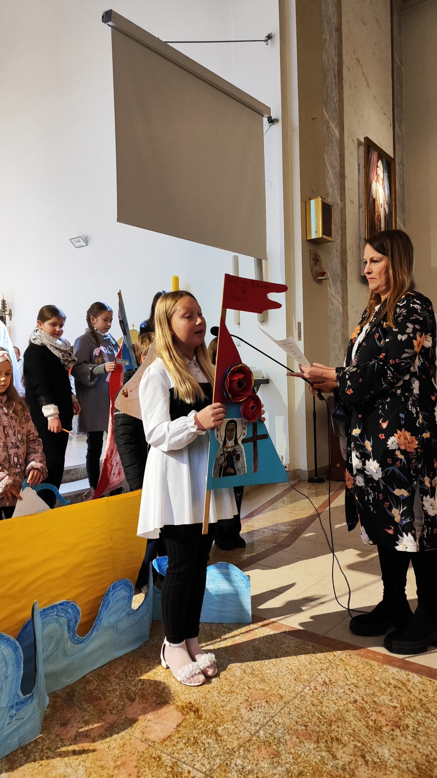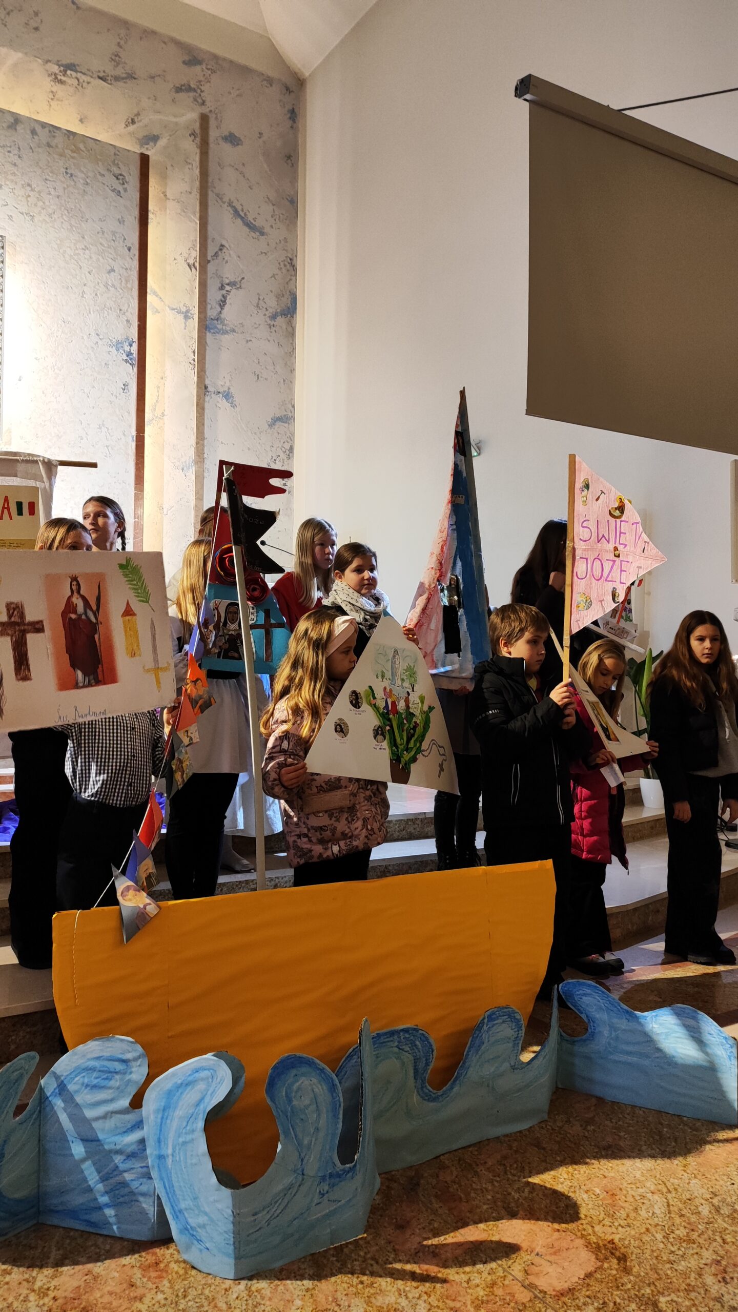 W niedzielę, 16 listopada 2025 r., odbył się w naszej parafii Korowód na cześć Świętych oraz prezentacja laureatów IX Szkolnego Konkursu „Czego uczą nas święci?”. Uczniowie Szkoły Podstawowej im. Henryka Sienkiewicza w Wiśniowej Górze radośnie przemaszerowali przez kościół, trzymając w rękach żagle, a w dalszej części przedstawili historie wybranych przez siebie świętych. Występom dzieci towarzyszył śpiew Parafialnej Scholi. Przesłaniem występu były ewangeliczne słowa: „Wypłyń na głębię”, wzywające do świętości budowanej w łączności z Jezusem i pomocą świętych, aby każdy nasz dzień był przeżywany odważnie, radośnie, twórczo, a przede wszystkim z dużymi pokładami miłości. Po Mszy Świętej odbyło się wręczenie nagród uczestnikom konkursu, które zostały zakupione dzięki wsparciu księdza proboszcza, Mariusz Sicińskiego oraz  życzliwości Rady Rodziców Szkoły Podstawowej. Pomysłodawczynią i organizatorką przedsięwzięcia jest katechetka, Beata Porochniak.