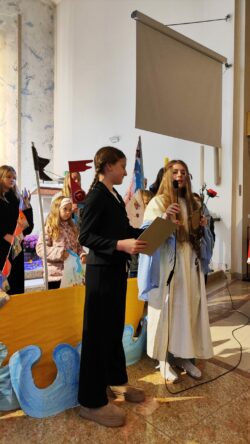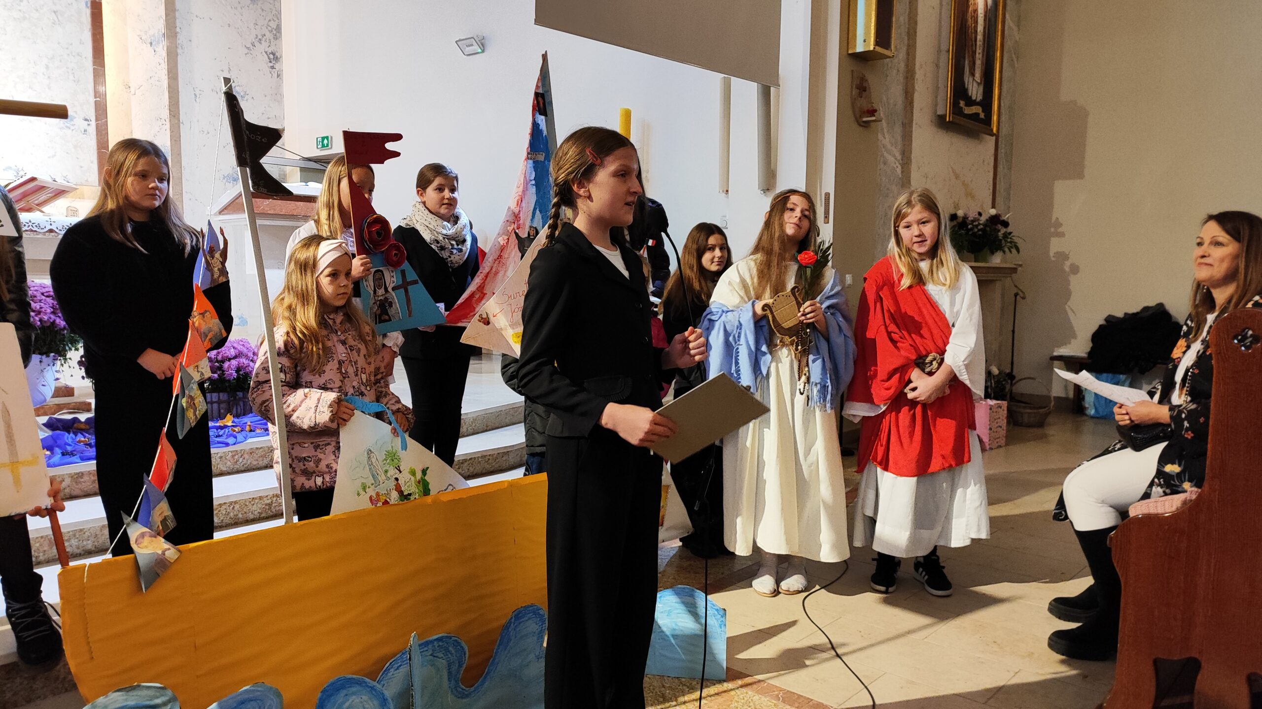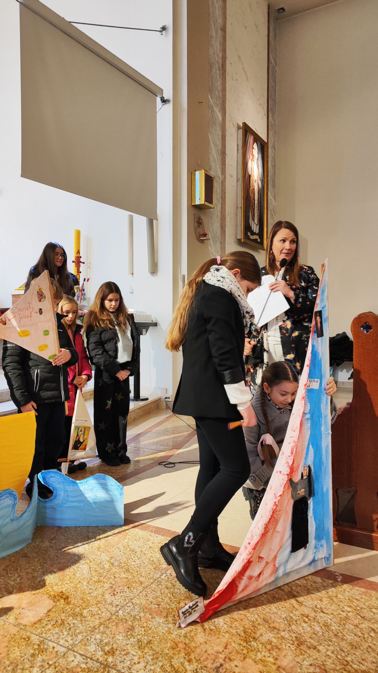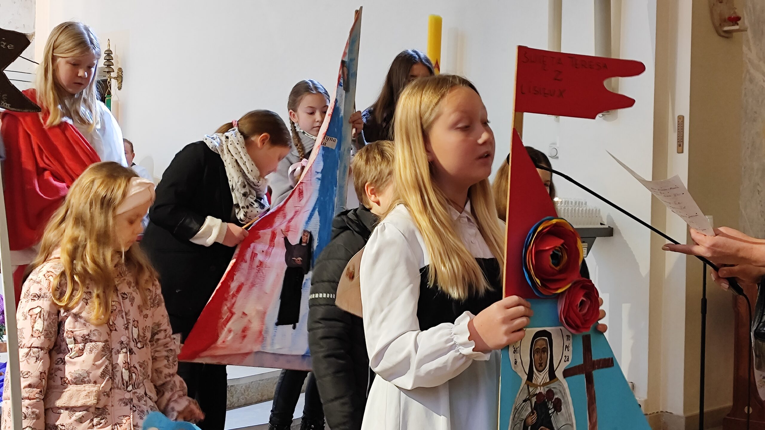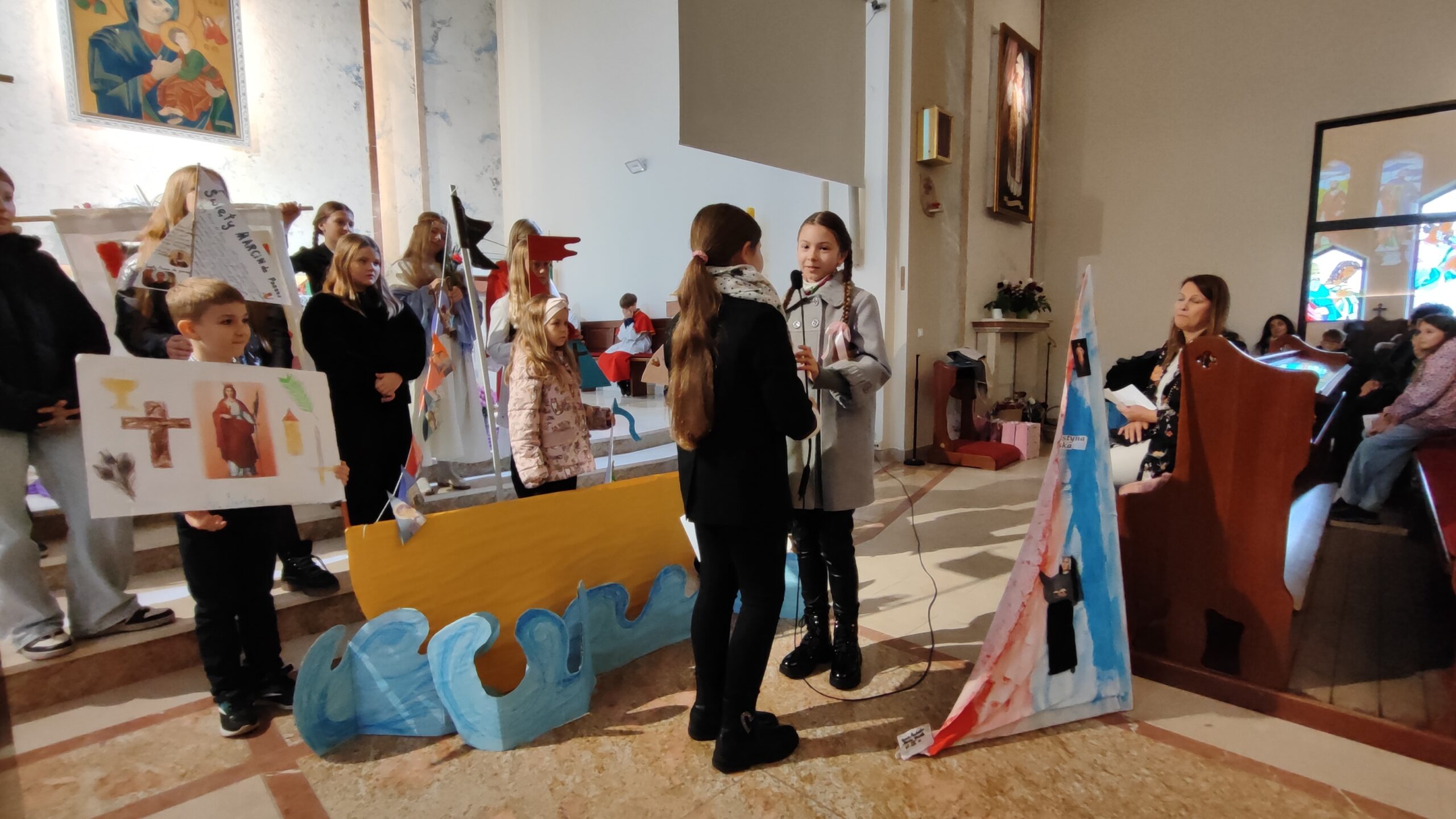 W niedzielę, 16 listopada 2025 r., odbył się w naszej parafii Korowód na cześć Świętych oraz prezentacja laureatów IX Szkolnego Konkursu „Czego uczą nas święci?”. Uczniowie Szkoły Podstawowej im. Henryka Sienkiewicza w Wiśniowej Górze radośnie przemaszerowali przez kościół, trzymając w rękach żagle, a w dalszej części przedstawili historie wybranych przez siebie świętych. Występom dzieci towarzyszył śpiew Parafialnej Scholi. Przesłaniem występu były ewangeliczne słowa: „Wypłyń na głębię”, wzywające do świętości budowanej w łączności z Jezusem i pomocą świętych, aby każdy nasz dzień był przeżywany odważnie, radośnie, twórczo, a przede wszystkim z dużymi pokładami miłości. Po Mszy Świętej odbyło się wręczenie nagród uczestnikom konkursu, które zostały zakupione dzięki wsparciu księdza proboszcza, Mariusz Sicińskiego oraz  życzliwości Rady Rodziców Szkoły Podstawowej. Pomysłodawczynią i organizatorką przedsięwzięcia jest katechetka, Beata Porochniak.